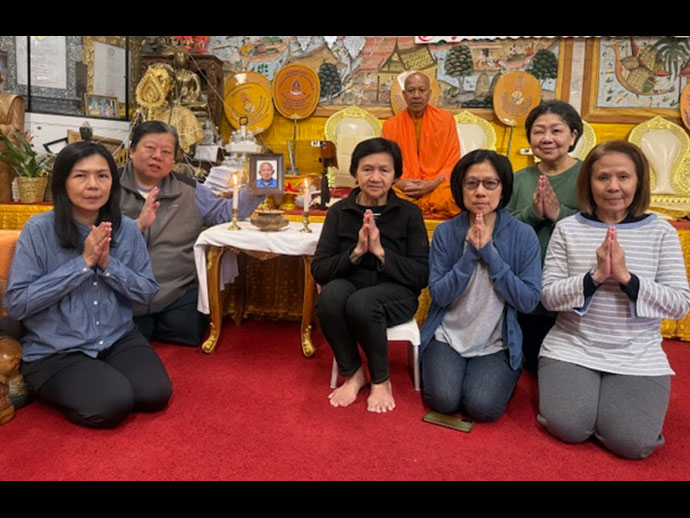 @@@.ส่งดวงวิญญาณคุณแม่สู่สวรรค์ คุณพวงมาลี พรมจันทร์ หรือพี่ใหญ่ โลไดพร้อมกับญาติพี่น้องจำนวนสิบคนกราบอาราธนาพระสงฆ์ จากวัดพุทธประทีป ซานฟรานซิสโก วัดพระพุทธิวงศ์มุนี เมืองโลได เดินทางไปปากอ่าวซานฟราน ประตูสวรรค์เมืองซานฟรานทางเหนือ เพื่อส่งดวงวิญญาณคุณแม่คำผิว วรรณศรี ที่ปากกาอ่าวประตูสวรรค์เมืองนครซานฟรานซิสโก วันที่ 12 สิงหาคม 2568 ท่า กลาง