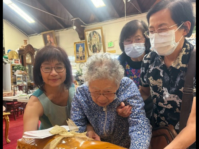 @@@.สะสมบุญมีความสุข คุณปิลยา ตรุณจันทรกุล จากเมืองซานโฮเซ ควงลูกสาวนส. กฤตติยากร ตรุณจันทรกุล และคุณศรัญญา คัมภีนานนท์ เจ้าของและทีมงานร้านอาหารไทยย่านเมือง Cupertino น้อมนำอาหารแห้ง อาหารสด มาถวายพระคุณเจ้าอย่างมีความสุขใจ เมื่อวันอาทิตย์ที่ผ่านมา แถมสนับสนุนอาหารการกุศลอีกหลายร้อยเหรียญ สาธุ ขอให้สุขภาพแข็งแรงตลอดไป