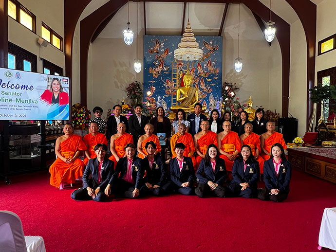 เนื่องด้วยท่านสมาชิกวุฒิสภาของรัฐแคลิฟอร์เนีย เขต 20 ครอบคลุม Burbank และ San Fernando Valley (California 20th State Senate District) แคโรลายน์ เมนจิว่าร์ เข้าพบปะหัวหน้าชุมชนไทยและกงสุล ที่วัดไทยลอสแองเจลิส ณ อุโบสถชั้น 2 เมื่อวันที่ 2 ตุลาคม 2025 ที่ผ่านมา ในเวลา 14.00 น.