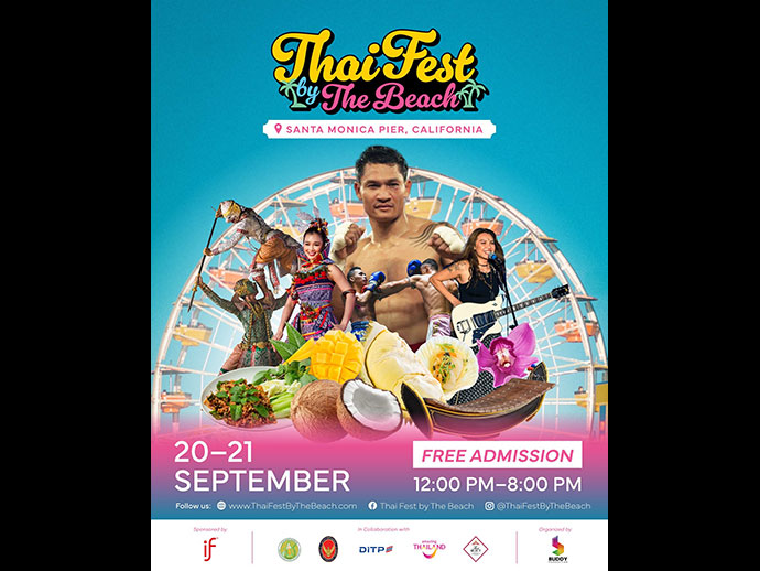 สัปดาห์นี้ มาดามจะมาชวนไปเที่ยวเมืองไทย โดยไม่ต้องขึ้นเครื่องบินด้วยการไปเที่ยวงาน วันที่ 20-21 กันยายนนี้ ที่ ชายหาด Santa Monica Beach Pier จะทำให้ทุกคนอบอวลไปด้วยความสุขริมหาด ได้ชิมรสชาติ อาหารไทย จากร้านอาหารต่างๆของเมืองลอส แอนเจลิส และ ใกล้เคียง ฟังดนตรีเพราะๆเล่นกันสดๆ Speak about Thai Town in Music ชมการต่อสู้ป้องกันตัวด้วย มวยไทย ซื้อสินค้าไทยมากมายที่นำมาเสนอ เที่ยวกันให้ฉ่ำๆ เต็มที่ทั้ง 2 วัน