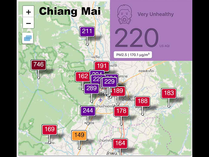 • แต่ในกรุงเทพฯ ค่าเฉลี่ยหลายปีอยู่ที่ 20–30 µg/m³ และภาคเหนือยิ่งหนักอีกสองเท่า
