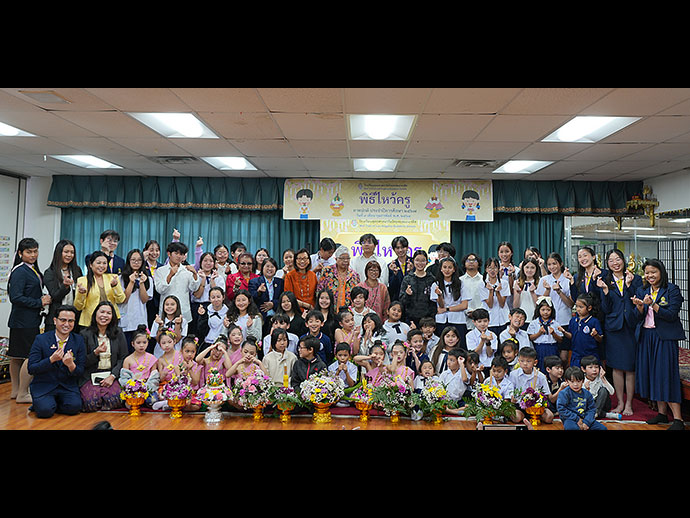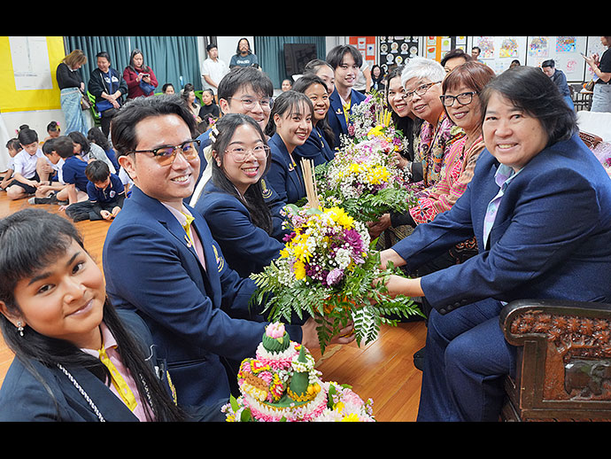 โดยกิจกรรมดังกล่าว คณะครูอาสาประจำการได้เชิญ ครูแต๋ว สุวัฒนา ปิ่นวัฒนะ ครูอาวุโสท้องถิ่นซึ่งอยู่คู่โรงเรียนวัดไทยฯ ซึ่งทุ่มเทถ่ายทอดวิชาความรู้ด้านภาษาและวัฒนธรรมไทยให้เด็กๆ ลูกหลานไทยที่เกิดและเติบโตในต่างแดนมาตั้งแต่ปี 2517 ให้เกียรติเป็นประธานในพิธีไหว้ครู จุดธูปเทียนบูชาพระรัตนตรัย มอบช่อดอกไม้ขอบคุณคณะครูอาสาท้องถิ่นซึ่งให้เกียรติเข้าร่วมพิธีด้วย พร้อมทั้งมอบช่อดอกไม้เป็นกำลังใจครูอาสาประจำการ และรับมอบพานดอกไม้บูชาพระคุณครูจากครูอาสาประจำการ ขอบพระคุณที่คอยชี้แนะแนวทางที่พึงปฏิบัติ เพื่อพัฒนาการศึกษาด้านภาษาและวัฒนธรรมให้ทันต่อความเจริญก้าวหน้าของยุคสมัย รายการสุดท้ายเป็นเด็กๆ เข้าแถวถือพานดอกไม้และช่อดอกไม้มอบให้คุณครู ขอบพระคุณที่สั่งสอนและอุทิศตนถ่ายทอดสรรพวิชาอย่างทุ่มเท