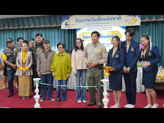 เสร็จกิจกรรมพิธีไหว้ครูประจำปีในช่วงเช้าแล้ว ก็เป็นกิจกรรมงานวันเด็กแห่งชาติ ซึ่งเริ่มกิจกรรมตั้งแต่เวลาบ่ายโมงเป็นต้นไป ท่านนายกสมาคมไทยแห่งแคลิฟอร์เนียภาคใต้คนใหม่ คุณคิด ฉัตรประภาชัย ตำรวจเชอรีฟฟ์ ให้เกียรติเป็นประธานเปิดงาน พร้อมทั้งมอบรางวัลของเด็กเล่นให้เด็กๆ นักเรียนทุกระดับชั้นที่เข้าร่วมกิจกรรมถ้วนหน้า เด็กๆ ชอบและสนุกสนานกันมาก ขออนุโมทนาขอบคุณคุณคิด ฉัตรประภาชัย นายกสมาคมไทยฯ ผู้ใหญ่ใจดีของชุมชนไทยมา ณ โอกาสนี้ด้วย ที่ช่วยยกระดับให้กิจกรรมวันเด็กแห่งชาติมีคุณค่าความหมายสำหรับพวกเขาอย่างยิ่ง