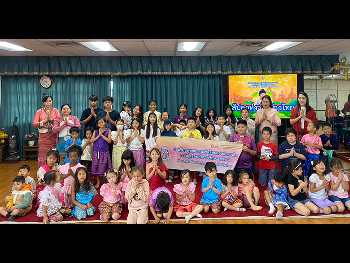 การเรียนการสอนภาษาไทยและวัฒนธรรมไทย ภาคฤดูร้อน ปีการศึกษา 2568 โดยครูจุ๊บ อ.พรพิมล ศิริวัฒน์ จากโรงเรียนสาธิตจุฬาฯ ฝ่ายประถม เป็นหัวหน้าคณะ ได้ดำเนินการจัดการเรียนการสอนมาตั้งแต่วันที่ 9 มิถุนายน เป็นต้นมา ผู้ปกครองสนใจนำบุตรหลานเข้าสมัครเรียนเป็นจำนวน 59 คน สัปดาห์นี้เป็นสัปดาห์ที่ 3 คณะครูได้จัดกิจกรรมวันสุนทรภู่และสัปดาห์งามอย่างไทย เรียนรู้และเข้าใจประวัติความเป็นมาของสุนทรภู่ จินตกวีเอกของไทยยุคต้นกรุงรัตนโกสินทร์ สนับสนุนให้เด็กๆ แต่งชุดไทยหลากสไตล์มาเรียน เพื่อให้เด็กๆ มีความซาบซึ้งรักและผูกพันในความเป็นไทยให้เป็นที่ปรากฎในต่างแดนเฉกเช่นชุมชนชาติต่างๆ ที่ดำรงชีวิตสร้างชุมชนเป็นปึกแผ่นในแผ่นดินอเมริกา