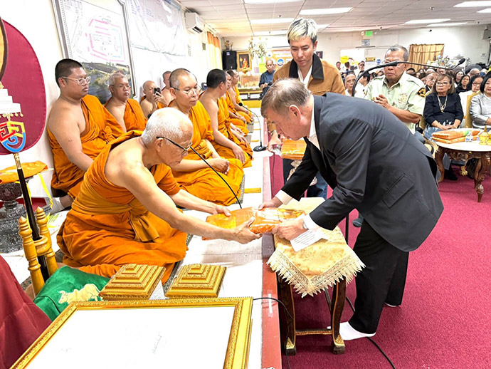 พิธีทอดผ้าพระกฐินประทาน ณ วัดพระธาตุดอยสุเทพ ยูเอสเอ เมืองชิโนฮิลส์ รัฐแคลิฟอร์เนีย เมื่อวันอาทิตย์ที่ 2 เดือนพฤศจิกายน พ.ศ. 2568 เจ้าพระคุณสมเด็จพระอริยวงศาคตญาณ สมเด็จพระสังฆราช สกลมหาสังฆปรินายก ทรงเมตตาโปรดประทานผ้าพระกฐิน ให้แก่คุณพงษ์เดช-คุณรุจา ตุลาภรณ์ เป็นประธานทอดผ้าพระกฐินประทาน คุณตรีรัตน์ เอี่ยมอุไรรัตน์ เป็นประธานถวายผ้าป่าบริวารกฐิน กงสุลต่อ ศรลัมพ์ กงสุลใหญ่ ณ นครลอสแองเจลิส เป็นเกียรติในงาน ในงานมีการทำบุญตักบาตร ถวายภัตตาหารเพล ถวายมหาสังฆทาน แห่ผ้าพระกฐิน การแสดงของนักเรียนโรงเรียนพุทธศาสนาวันอาทิตย์ การแจกโรงทานฟรี ขออนุโมทนาในกุศลศรัทธาปสาทะของท่านทั้งหลาย ขอขอบคุณ อนุโมทนา เจ้าภาพโรงทานทุกคนทุกท่าน ขอให้มีความสุขความเจริญ ในชีวิต หน้าที่ การงาน มี อายุวัฑฒะโก ธะนะวัฑฒะโก สิริวัฑฒะโก ยะสะวัฑฒะโก พะละวัฑฒะโก วัณณะวัฑฒะโก สุขะวัฑฒะโก ปฏิภาณ ธนสารสมบัติ ธรรมสารสมบัติ เจริญรุ่งเรือง ในบวรพระพุทธศาสนา ตลอดกาลเป็นนิตย์...ขอบคุณภาพจากคุณน้อย ข่าวสด..Noii Santa