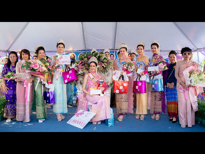 กิจกรรมที่สร้างสีสันอลังการให้กับงานสงกรานต์ คือ การประกวดเทพีสงกรานต์ เป็นการสืบสานตำนานสงกรานต์ ว่าเป็นธิดาท้าวมหาพรหมแพ้พนันต่อธรรมบาลกุมารต้องตัดศีรษะตัวเองให้ธิดาทั้ง 7 ผลัดเปลี่ยนกันอัญเชิญเวียนรอบเขาพระสุเมรเป็นประจำทุกปี โดยปีนี้มีสาวงามสมัครเข้าประกวดจำนวน 16 คน ผลการประกวดผู้ชนะใจกรรมการได้รับตำแหน่งเทพีสงกรานต์ ได้แก่สาวงาม No.16 น้อง Pinki พดาชาลินทร์ ดุรงค์เดช ได้รับมงกุฎ สายสะพาย ถ้วยรางวัล ช่อดอกไม้ เงินสด $1,500,รองอันดับหนึ่ง คือ สาวงาม No.15 คุณ Anna ฉัตริยา จันทร์สำราญ ได้รับมงกุฎ สายสะพาย ถ้วยรางวัล ช่อดอกไม้ เงินสด $1,000, รองอันดับสองได้แก่สาวงาม No.3 น้องอลิสา โค ได้รับมงกุฎ สายสะพาย ถ้วยรางวัล ช่อดอกไม้ เงินสด $800, รองอันดับสาม คือ No.2 ลูกหมู ณิชาลี จิราจิน ได้รับมงกุฎ สายสะพาย ถ้วยรางวัล ช่อดอกไม้ เงินสด $600, รองอันดับสี่ No.1 ภูฟ้า Tunyada วงศ์สุวรรณ ได้รับมงกุฎ สายสะพาย ถ้วยรางวัล ช่อดอกไม้ เงินสด $400 นอกจากนั้นก็มีรางวัลขวัญใจมหาชน ได้แก่สาวงาม No.9 Jessica เจสสิกา เทพธรรม ได้รับมงกุฎ สายสะพาย ถ้วยรางวัล ช่อดอกไม้ เงินสด $1,000 โดยเธอได้ลูกโป่งเชียร์นางงามคนเดียว $7,190 (ยอดขายลูกโป่งยังไม่ได้หักค่าใช้จ่ายได้ยอดเงินทำบุญเข้าวัดรวมทั้งสิ้น $13,120) ส่วนรางวัลขวัญใจช่างภาพและสื่อมวลชน ได้แก่ No.15 Anna ฉัตริยา จันทร์สำราญ ได้รับมงกุฎ สายสะพาย ถ้วยรางวัล ช่อดอกไม้ เงินสด $500
