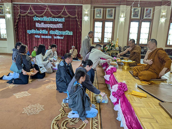 งานเทศกาลประเพณีสงกรานต์วันขึ้นปีใหม่ของไทยแต่โบราณ ซึ่งวัดไทยลอสแองเจลิสจัดขึ้นเมื่อวันที่ 11-12 เมษายน 2569 พี่น้องชาวไทยและชาวต่างชาติให้ความสนใจเข้าร่วมงานเป็นจำนวนมากเต็มพื้นที่วัดไทยฯ ซึ่งจัดงานสงกรานต์ในปีนี้ทางวัดไทยฯ ได้รับเกียรติจาก คุณวรรณา โคตรอาษา เป็นประธานจัดงานฯ คุณทัศนียา ทรรพวสุ เป็นประธานกองประกวดเทพีสงกรานต์ โดยมี คุณหน่อย วรรณวิภา ถุงสุวรรณ คุณดำ จุฑาภรณ์ ไชยรัตน์ติเวช อดีตนายกสมาคมไทยปักษ์ใต้ และ คุณกาญจนา ทองทิพย์ สามแรงแข็งขันร่วมใจกันเป็นประธานทอดผ้าป่า โดยทุกองคาพยพทุ่มเทพลังกายและใจขับเคลื่อนให้การจัดงานประสบความสำเร็จอย่างภาคภูมิใจ รวมรายรับในทุกกิจกรรมของงานนำเข้าบำรุงวัดรวมเป็นจำนวนเงินทั้งสิ้น 146,652.00 เหรียญ