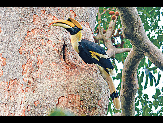 “นกกกหรือนกกาฮัง” นกเงือกที่ใหญ่ที่สุด นกกกหรือนกกาฮัง เป็นนกที่มีลำตัวขนาดใหญ่ที่สุดในกลุ่มนกเงือก 13 ชนิดที่อาศัยอยู่ในประเทศไทย มีลำตัวยาวจากหางถึงปาก อาจจะถึง 150 ซม. น้ำหนักหลายกิโลกรัม เป็นนกที่มีอายุยืนได้ถึง 30-40 ปี และเป็นนกประจำถิ่นสามารถหาดูได้ไม่ยาก เป็นนกเงือกชนิดเดียวที่พบได้ทั่วทุกภาคของประเทศไทย ชอบกินผลไม้เป็นอาหาร โดยเฉพาะลูกไทร ลูกตาเสือและอื่นๆและยังกินสัตว์ตัวขนาดเล็กเป็นอาหาร ช่วงจังหวะบินจะมีเสียงดัง ได้ยินมาแต่ไกลและจะเกาะกิ่งไม้ใหญ่ ก่อนที่จะกระโดดออกไปกินลูกไม้