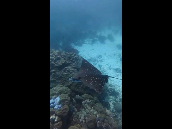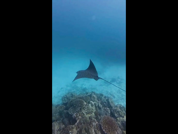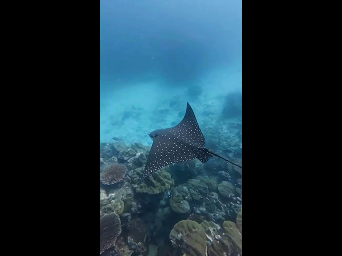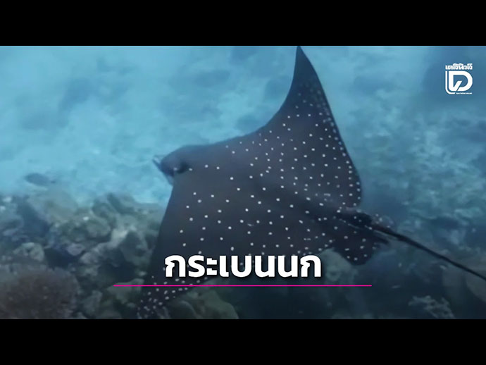 นักท่องเที่ยวตื่นตาตื่นใจหลังดำน้ำไปพบกับ "ปลากระเบนนก" ขนาดความกว้าง 80 เซนติเมตร สัตว์ทะเลหายากในบัญชี IUCN บริเวณอ่าวแม่ยาย ภายใน เขตอุทยานแห่งชาติ หมู่เกาะสุรินทร์ จ.พังงา
