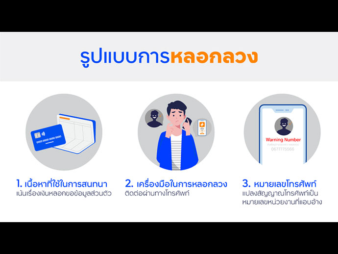 คำนึงไว้เสมอว่าหน่วยงานราชการ สถาบันการเงิน หรือเจ้าหน้าที่รัฐจะไม่สอบถามข้อมูลผ่านโทรศัพท์