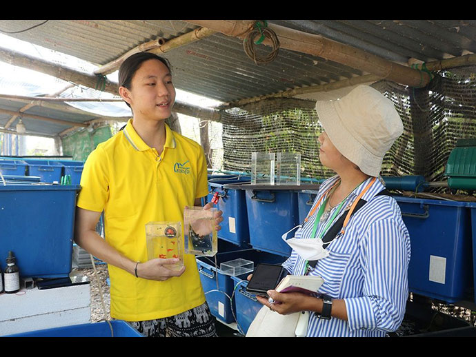 นักศึกษาปี 4 จุฬาลงกรณ์มหาวิทยาลัยบ้านอยู่อำเภอโพธาราม ใช้เวลาว่างช่วงวันหยุดเลี้ยงปลาหางนกยูง ส่งออกขายทั้งในและต่างประเทศ สามารถเพาะผสมสายพันธุ์ดราก้อนเป็นผลสำเร็จ มีรายได้เดือนเป็นหมื่นบาท