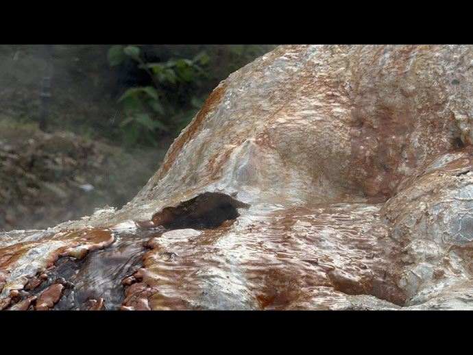 “พุน้ำร้อนหรือน้ำพุร้อน โดยมากคือชั้นน้ำใต้ดินที่ไหลเวียนอยู่ใต้ผิวดิน และบางจุดได้รับความร้อนจากใต้พิภพ เมื่อมีรอยแตกถึงผิวดิน น้ำถึงพุออกมาเป็นแหล่งพุน้ำร้อน เมื่อแผ่นดินไหวเกิดขึ้น ตะกอนสนิมเหล็ก ตะกอนดิน และอื่นๆ ที่ตกตะกอนตามทางน้ำใต้ดินถูกรบกวนให้ฟุ้งขึ้นมาปนกับน้ำ น้ำร้อนที่พุขึ้นมาสู่ผิวดินจึงสามารถเปลี่ยนสีได้ตามตะกอนที่ปนอยู่ แต่เมื่อเหตุการณ์สงบ ตะกอนจะกลับตกตะกอนจากน้ำ ทำให้น้ำกลับใสเหมือนเดิม