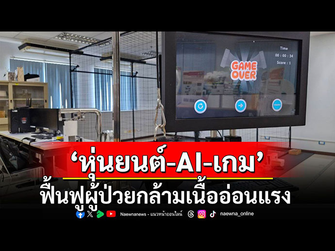 ได้ดำเนินการวิจัยและพัฒนา “หุ่นยนต์ต้นแบบช่วยกายภาพบำบัดผู้ป่วยกล้ามเนื้ออ่อนแรงบริเวณขาโดยใช้ปัญญาประดิษฐ์และเกม” โดยมุ่งเน้นการพัฒนาอุปกรณ์ต้นแบบที่สามารถใช้งานได้จริงในบริบทของผู้ป่วยกล้ามเนื้ออ่อนแรงบริเวณขา พร้อมระบบเกมที่ออกแบบขึ้นโดยเฉพาะสำหรับการกระตุ้นการขยับร่างกายผ่านเกมที่มีเป้าหมายชัดเจน โดยได้รับความร่วมมือจากแพทย์และบุคลากรในโรงพยาบาลผู้สูงอายุบางขุนเทียน ที่นำข้อมูลเชิงลึกและความต้องการของผู้ป่วยมาเป็นโจทย์ในการพัฒนางานวิจัย
