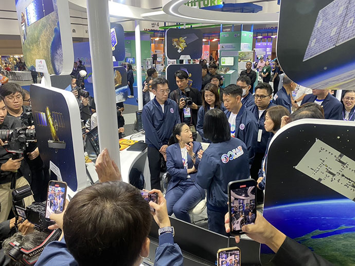 สำหรับอีกงานที่พลาดไม่ได้คือ งานนิทรรศการมหกรรมวิทยาศาสตร์และเทคโนโลยีแห่งชาติ ซึ่งปีนี้ GISTDA มาในตีม Space Adventure เน้นการผจญภัยอย่างมีสาระ กระตุ้นจินตนาการและเสริมสร้างแรงบันดาลใจให้กับเยาวชนกิจกรรมต่างๆ เช่น อยากเห็นคนไทยทำอะไรในอวกาศ การค้นหาดาวเทียมสำรวจในอวกาศ Gravity Room หรือการถ่ายภาพเสมือนจริงในสถานีอวกาศให้บรรยากาศว่ากำลังลอยอยู่ในอวกาศ เป็นต้น รองผู้อำนวยการ GISTDA กล่าว