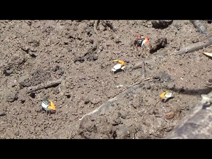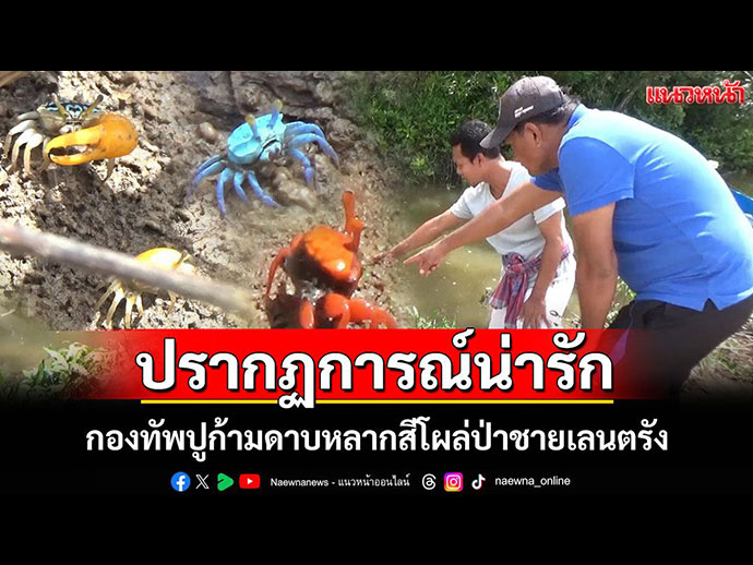 วันอังคาร ที่ 9 กันยายน พ.ศ. 2568:ชาวบ้านในพื้นที่ตำบลท่าข้าม อำเภอปะเหลียน จังหวัดตรัง เผยภาพความสวยงามของ "กองทัพปูก้ามดาบ" ที่ออกมาหากินบริเวณป่าชายเลนเป็นจำนวนมาก โดยมีสีสันที่สวยงามและหลากหลาย ทั้งสีฟ้า สีส้ม สีเหลือง และสีแดง สร้างความตื่นตาตื่นใจให้กับผู้ที่มาเยี่ยมชม