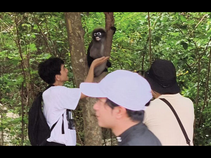 พฤติกรรมของลูกค่างแว่นตัวสีทองนี้จะกระโดดปีนป่ายไต่ตามกิ่งไม้และตัวของพ่อแม่ ทำให้นักท่องเที่ยวตื่นตาตื่นใจ อดไม่ได้ที่จะยกโทรศัพท์มือถือขึ้นถ่ายภาพพร้อมกับเซลฟี่เก็บไว้เป็นที่ระลึก ก่อนเดินเท้าขึ้นสู่ยอดเขาเพื่อพิสูจน์ความแข็งแกร่งของตนเอง พร้อมกราบไหว้สักการะรอยพระพุทธบาทจำลองที่ประดิษฐานอยู่บนยอดเขาล้อมหมวก เมื่อพิชิตยอดเขาล้อมหมวกจนถึงจุดสูงสุดและกลับลงมาถึงด้านล่าง นักท่องเที่ยวจะได้รับใบประกาศของกิจกรรมนี้กลับบ้านเก็บไว้เป็นที่ระลึก