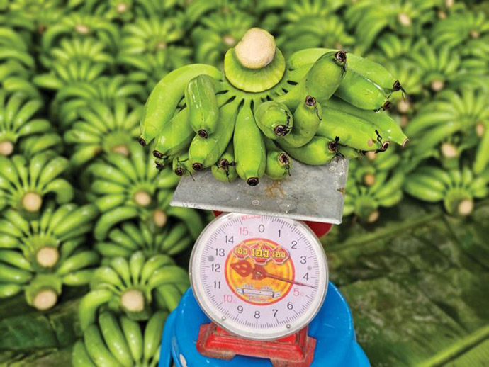 ทั้งนี้ ทางสวนจะเลือกตัดผลแก่ที่ประมาณ 80-90 เปอร์เซ็นต์ ซึ่งผลของกล้วยจะอวบกลมไม่มีเหลี่ยม ใน 1 เดือนจะเก็บผลผลิตจำนวน 4 รอบ รอบละประมาณ 80-100 เครือ เครือละประมาณ 5-6 หวี โดยมีแม่ค้าในจังหวัดนครปฐมมารับซื้อถึงสวน ราคาจำหน่ายเฉลี่ยอยู่ที่หวีละ 40 บาท