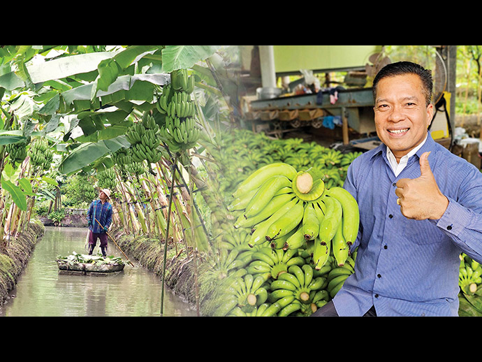 โดยนำหน่อ “กล้วยหอมทองสายพันธุ์ปทุมธานี” จำนวน 1,400 ต้น มาปลูกบนร่องสวน ขนาดพื้นที่ 8 ไร่ ซึ่งกล้วยหอมสายพันธุ์นี้มีลักษณะเด่นอยู่ที่ผลใหญ่ยาว เนื้อเหนียวแน่น รสชาติหวานหอม และมีเปลือกบาง เป็นที่นิยมทั้งตลาดในและต่างประเทศ
