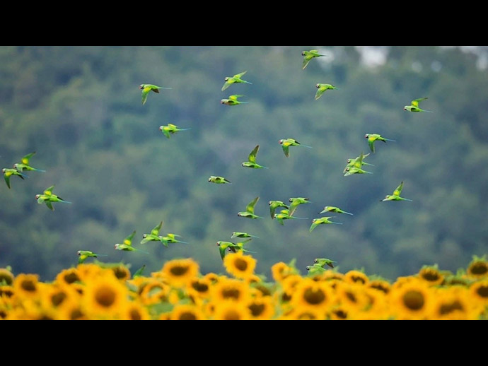 ทางด้าน นายเทวา มหาศาล เจ้าของไร่มณีศร ทุ่งทานตะวันเขาใหญ่ เผยว่า นกแขกเต้าฝูงใหญ่เหล่านี้อยู่ในสายพันธุ์นกแก้ว ชาวบ้านท้องถิ่นจะเรียกกันว่า นกแขกเต้าเป็นแขกประจำของทางไร่ เพราะมักจะพาฝูงบินมาโฉบกินเมล็ดทานตะวันที่ไร่ในช่วงเวลานี้ทุกๆ ปี