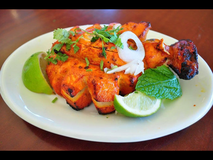 Tandori Chicken leg มาพร้อมหัวหอมทอด อันนี้ของโปรดของสี่สหาย เพราะว่าเขาใช้ส่วนอกที่ติดกับน่องไก่ชิ้นใหญ่มาทำ รสชาติจัดจ้านถึงพริกถึงขิง มีทั้งพริก ทั้งขิง ทั้งข่าพริกไทย คลุก Ghee หรือเนยใส เครื่องเทศแบบกะหรี่สีเขียว และคลุกด้วยโยเกิร์ต ทำให้นุ่มและอร่อยสุดๆ จานนี้เรามักจะต้องสั่งถึงสองจานทุกครั้งไป