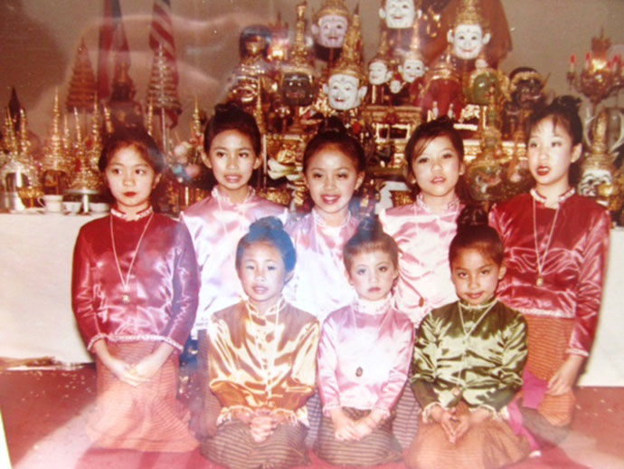 โดยเมื่อดิฉันเข้าไปร่วมด้วยช่วยสอนตามคำชักจูงของเพื่อน “จิ๋ว-สุวัฒนา วรรณรักษ์ ที่เราเป็นศิษย์รำสำนักเดียวกันมาตั้งแต่เมืองไทยนั่นคือ เราเป็นศิษย์นาฏศิลป์สัมพันธ์ และครูใหญ่ฝ่ายนาฏศิลป์ของวัดมงคลในตอนนั้นก็คือ คุณเพลินใจ หรือ ดร.เพลินใจ กุนฑีกาญจน์ ศิษย์ ครูสัมพันธ์ พันธ์มณี เช่นกัน เป็นครูใหญ่ฝ่ายนาฏศิลป์นี้ตั้งแต่วันที่สร้างวัดมงคลจนปีปัจจุบันนี้ และมีเพื่อนรุ่นน้องอีกท่านมาช่วยสอน คือคุณปุ๊ก-ศิริพร จมะวัตร และมี “พี่แป้น” อัปสร วัฒนสมบัติ ช่วยด้วยอีกแรงหนึ่ง