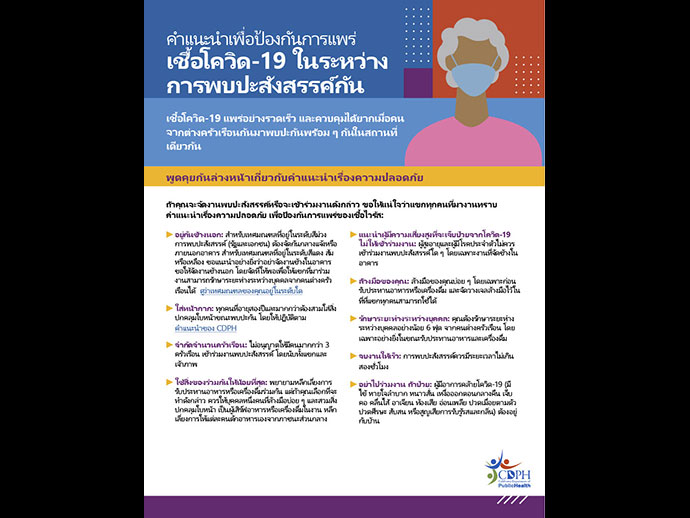 ดูเอกสารได้ที่https://www.cdph.ca.gov/Programs/CID/DCDC/CDPH%20Document%20Library/COVID-19/Guidance-for-the-Prevention-of-COVID-19-Transmission-for-Gatherings--th.pdf