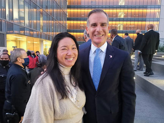 คุณรอสลิน ปัทมคันธิน ประธานสภาหอการค้าไทยฯ ร่วมรับฟังการแถลงการ การจับผู้ก่อการโจรกรรมในพื้นที่ปกครองของ LAPD ซึ่งโจรกลุ่มนี้ทำงานกันแบบเป็นทีมและเป็นโจรกรรมแบบปล้นสะดม Smash-and-grab robberies