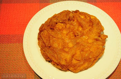 ต้องมีความแรงอยู่พอสมควร แต่ไม่ถึงกับต้องแรงจัด คนที่ไม่มีเตาเร่งหรือเตาฟู่ ก็ยังพอทำได้ครับ นำหม้อใส่น้ำมันพืช แล้วนำไปตั้งไฟ พอให้เริ่มมีควันเล็กน้อย ไม่ถึงกับควันโขมงนะ สำหรับหม้อขนาดนี้ ใช้ไข่ 2 ฟอง กำลังเหมาะครับ ถ้าใช้ 3 ฟองก็ยังพอได้อยู่ แต่มันจะฟูขึ้นมาจนเกือบล้นเวลาทอด เดี๋ยวคอยดูละกันเนอะ ปรุงรสด้วยซีอิ้วขาวเพียงอย่างเดียว แล้วตีเร็วๆ ให้เข้ากัน ตีเสร็จแล้ว อย่าวางทิ้งไว้ รีบเอาลงกระทะเลย ฟองอากาศมันจะได้ยังแฝงตัวอยู่ในเนื้อไข่ ไม่ลอยขึ้นมาจนหมด
