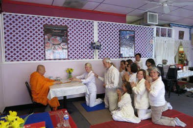 เมื่อวันเสาร์ที่ ๑๘ มกราคม พ.ศ.๒๕๕๗ กัลฯศรีรัตน์ แมคเลนแนน และลูกพระธัมฯ เมืองซาคราเมนโต รัฐแคลิฟอร์เนีย ได้จัดปฏิบัติธรรม เจริญสมาธิภาวนา และถวายภัตตาหารเพล เป็นประจำทุกๆ เดือน โดยได้นิมนต์พระสุชาติ สุจิตฺโต ผู้ช่วยเจ้าอาวาสจากวัดพระธรรมกายซิลิคอนวัลเลย์ มานำปฏิบัติธรรม และในวันอาทิตย์ที่ ๑๙ มกราคม พ.ศ.๒๕๕๗ ภาคเช้าได้จัดปฏิบัติธรรม เจริญสมาธิภาวนาภาคภาษาอังกฤษ แก่ชาวอเมริกันและญาติมิตร ณ ร้านอาหาร ราชานู๊ดเดิลของลูกพระธัมฯครอบครัวพุทธาพิทักษ์กุล เมืองเรดดิ้ง รัฐแคลิฟอร์เนีย โดยมีกัลฯอรุณี และกัลฯชาญชัย อังศิริลาวัลย์ เป็นสารถีแก้ว รับบุญขับรถในครั้งนี้ จากเมืองซาคราเมนโต้ถึงเมืองเร็ดดิ้ง ส่วนภาคบ่าย ปฏิบัติธรรมและพิธีทอดผ้าป่าสามัคคี และถวายทองคำหล่อรูปเหมือนคุณยายอาจารย์มหารัตนอุบาสิกาจันทร์ ขนนกยูง เนื่องในวันครบรอบ ๑๐๕ ปีของคุณยายฯ ซึ่งงานบุญในครั้งนี้ ทุกๆท่านต่างปลาบปลื้มปีติเบิกบานในบุญกันอย่างถ้วนหน้า