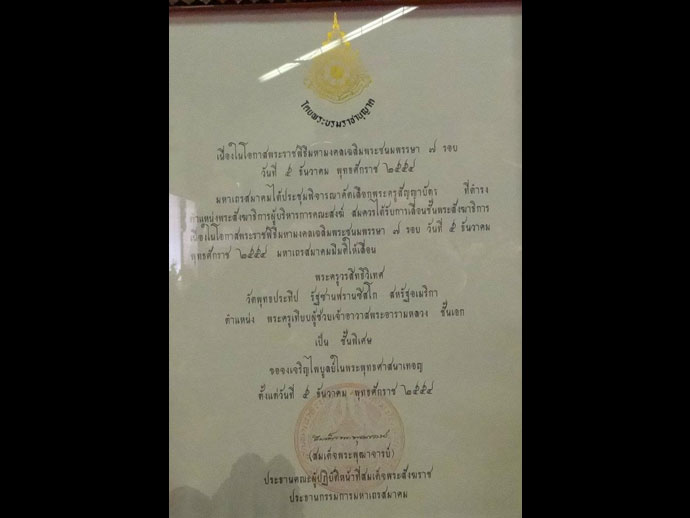 ทางสมาคมไทยแห่งแคลิฟอร์เนียภาคเหนือ ขอถวายมุทิตาสักการะแด่.. ท่านพระครูวรสิทธิวิเทศ เจ้าอาวาสวัดพุทธประทีป เมืองซานบูรูโน ซาน ฟรานซิสโก เบย์แอเรีย ที่ได้รับพระมหากรุณาธิคุณโปรดเกล้าพระราชทานจาก พระบาทสมเด็จพระเจ้าอยู่หัวฯ ภูมิพลอดุยเดช ในโวรกาสเฉลิมพระชนมพรรษา 5 ธันวาคม 2554 เลื่อนสมณศักดิ์เป็น พระครูสัญญาบัตร-พัดยศ ชั้นพิเศษเทียบผู้ช่วยเจ้าวาสพระอารามหลวง ขอให้พระคุณเจ้าจงเจริญในบวรพุทธศาสนา เป็นที่เคารพสักการะบูชา และเป็นที่พึ่งแด่พุทธศาสนิกชนทั่วไปตลอดกาลนานเทอญฯ