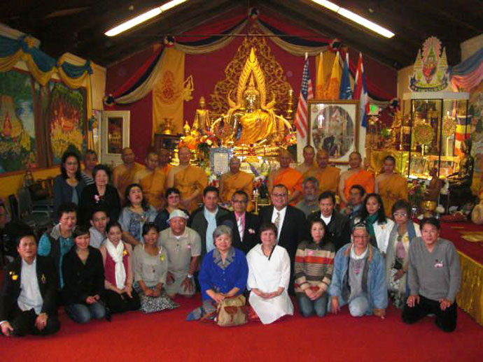 เมื่อวันอาทิตย์ที่ 8 เมษายน ที่ผ่านมา ผู้เขียนกับเพื่อนรุ่นน้อง คุณนารีรัตน์ นาครศรี ได้มีโอกาสไปร่วมงานพิธีฉลองสมณศักดิ์ของพระครูวรสิทธิวิเทศ เจ้าอาวาสวัดพุทธประทีปเมืองซานบรูโน่ ฝั่งซานฟรานซิสโก เนื่องในโอกาสที่ท่านพระครูได้รับเลื่อนเป็นพระครูสัญญาบัตรเทียบผู้ช่วยเจ้าอาวาสพระอารามหลวงชั้นพิเศษ (วัดไตรมิตรวิทยาราม กรุงเทพมหานคร) ก็ขอถือโอกาสนำเรื่องและภาพจากความประทับใจในงานมาให้ได้อ่านและชมกันนะคะ