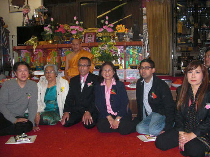 และเมื่อเสร็จพิธีสงฆ์ท่านเจ้าอาวาสก็ได้มาพูดคุยกับศิษย์ที่มาแสดงมุทิตาสักการะท่านในวันนั้นอย่างทั่วถึง ผู้เขียนและคุณนารีรัตน์ได้เข้าร่วมสักการะพร้อมกับคุณวัลลภ คชินทร นายกสมาคมไทยแห่งแคลิฟอร์เนียภาคเหนือ คุณวีระชัย จงเจริญรุ่งเรือง และ คุณคิด จักกะพาก ซึ่งท่านเจ้าอาวาสก็ได้ให้การต้อนรับคณะของเราอย่างอบอุ่นยิ่ง