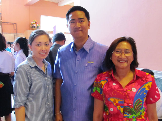 ผู้เขียน กับ ทิฟฟานี่ เชลตัน เยาวชนไทยอเมริกันเด็กที่เกิดและเติบโตเรียนดนตรีไทยมาจากวัดพุทธานุสรณ์ แต่ตอนนี้มาทำงานเป็นอาจารย์อยู่ที่มหาวิทยาลัยเอแบค นัดพบกันหน้าโต๊ะจองบัตรในโรงละครแห่งชาติ โดยเวลาการแสดงจะเริ่ม 13.00 นาฬิกา เราไปถึงก่อนเวลานับชั่วโมงเพราะเกรงจะพลาดการแสดง ซึ่งก็คงมีผู้คิดเช่นเดียวกันจำนวนมาก เพราะว่าโรงละครแห่งชาติบ่ายนั้นเต็มไปด้วยผู้คน มีทั้งนักเรียนมัธยม นักศึกษาและประชาชน เป็นที่น่าชื่นใจที่ได้เห็นคนรุ่นใหม่และคนไทยยังให้ความสนใจมาชมดนตรีไทย โดยเฉพาะด้านเครื่องสายไทย ปลื้มใจแทนบรรดาคุณครูดนตรีไทยและคุณครูทองดีเป็นอย่างยิ่ง