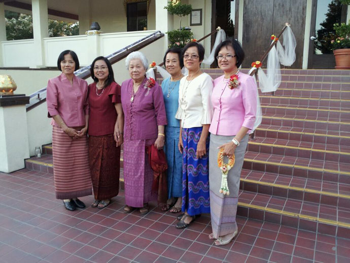 น้องชมพู่ เป็นบุตรของ คุณจี๊ด-ลดาวัลย์ และ คุณบุญส่ง ทวีไทย คุณแม่น้องชมพู่ เคยเป็นครูใหญ่โรงเรียนวัดพุทธานุสรณ์มาหลายปี ผู้เขียนเองก็สนิทสนมคุ้นเคยกับครอบครัวน้องชมพู่มาตั้งแต่น้องเขายังเป็นนักเรียนชั้นมัธยม ในเวลานั้นชมพู่มาเรียนภาษาไทย นาฏศิลป์ดนตรีไทย ได้รับบทเป็นตัวละครเอกหลายครั้ง เป็นที่ภูมิใจของพี่ป้าน้าอาและชุมชนไทย ดังนั้นเมื่อได้ข่าวน้องชมพู่ได้พบคนดีมาเป็นคู่สมรสทุกคนก็ขอร่วมแสดงความยินดีด้วย พิธีสมรสตามประเพณีไทยจัดให้มีขึ้น ณ วัดพุทธานุสรณ์ เมืองฟรีมอนต์ เมื่อวันที่ 1 กันยายน 2012 ที่ผ่านมา งานเริ่มตอนบ่ายสามโมง พระสงฆ์เก้ารูป