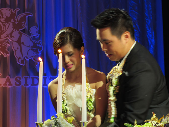 และอีกกิจกรรมของอาทิตย์ที่ผ่านมา ขอบันทึกถึงการรวมพลคนเบย์แอเรียในกรุงเทพฯ การรวมพลดังกล่าวนี้มิได้ไปร่วมขบวนม๊อบที่ใดนะคะ แต่รวมตัวกันไปร่วมงานฉลองสมรสของ บอย-กษิดิศ ศิริญาณ บัณฑิตจากยูซีริเวอร์ไซต์ บุตรชาย คุณชัยวัฒน์-ม่วยนี้ ศิริญาณ อดีตนายกสมาคมไทยซานฟราน ณ โรงแรมเพนนินซูล่า ถนนเจริญนคร ฝั่งธนบุรี กับเจ้าสาวคนสวย กิฟ-จันทราภา บัณฑิตจากคณะอักษรศาสตร์จุฬาลงกรณ์มหาวิทยาลัย บุตรสาว คุณอนุสนธ์ กับ ผศ. ขวัญเดือน ชวนประสิทธิ ซึ่งหนุ่มสาวพบกันในเบย์แอเรียค่ะ ทั้งคู่ต่างก็ให้สัมภาษณ์ว่าที่เกิดความรักกันจนตัดสินใจใช้ชีวิตร่วมกันนั้น เป็นเพราะต่างคนต่างดูแลเอาใจใส่ทุกข์สุขกันและกันตลอดระยะเวลาห้าปีที่คบหากัน