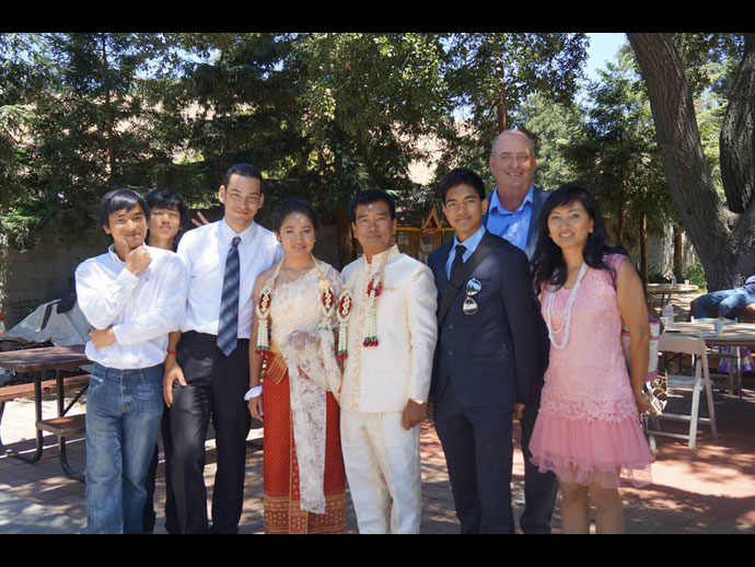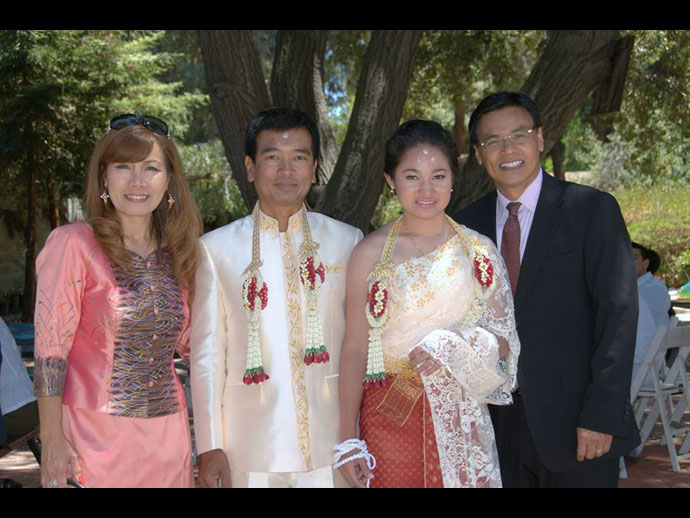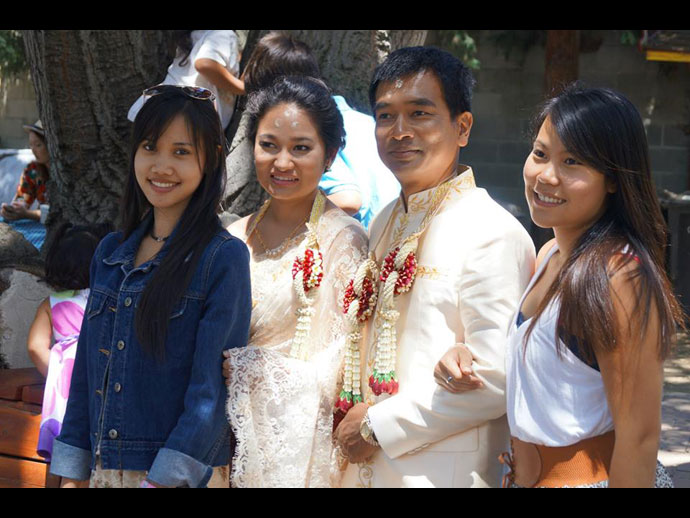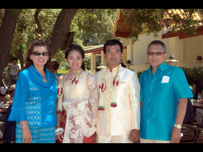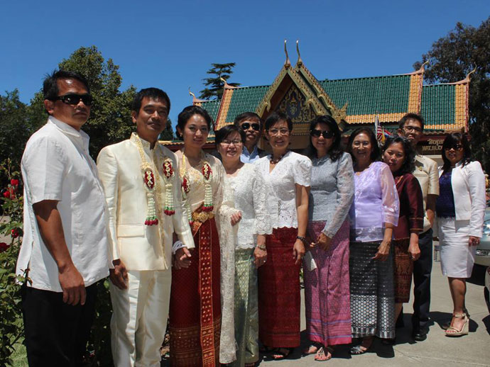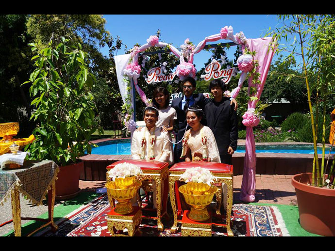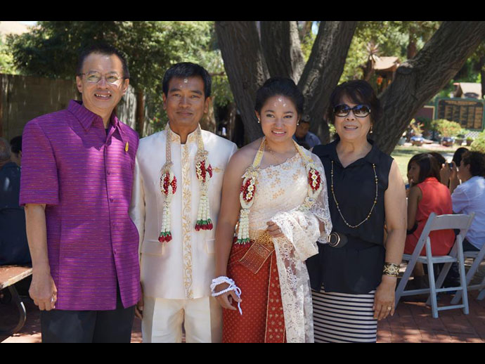 มารู้จักคู่บ่าวสาวที่เอ่ยถึงกันนะคะคู่สมรสคู่นี้คือ คุณป๋อง-เริงศักดิ์ ฤทธิประเสริฐ และ คุณแพรว-ประไพพิมพ์ สุขพลี คุณป๋องเป็นกรรมการวัดพุทธานุสรณ์ เคยเป็นเจ้าของร้าน House of Siam ตั้งแต่ปี ค.ศ. 1992 ถึง ปี ค.ศ.2012 ตอนนี้เป็นเจ้าของ Thai Street Food ขายของใน Farmers' Market และรับงานจัดสวน ก่อสร้าง ต่อเติม เป็นงานอดิเรกอีกด้วย ด้านการศึกษาคุณป๋องจบปริญญาตรีสองใบ ใบแรก คณะเกษตร มหาวิทยาลัยเกษตรศาสตร์ และ ปริญญาตรี Computer Science San Jose State University ปริญญาโทสองใบที่ National University MBA Electronic Commerce และ MS Telecommunication ส่วนคุณแพรวจบปริญญาตรีที่ มหาวิทยาลัยศิลปากร วิทยาเขตทับแก้ว ปริญญาโทจากจุฬาลงกรณ์มหาวิทยาลัย และปริญญาโท MBA จาก Silicon Valley University