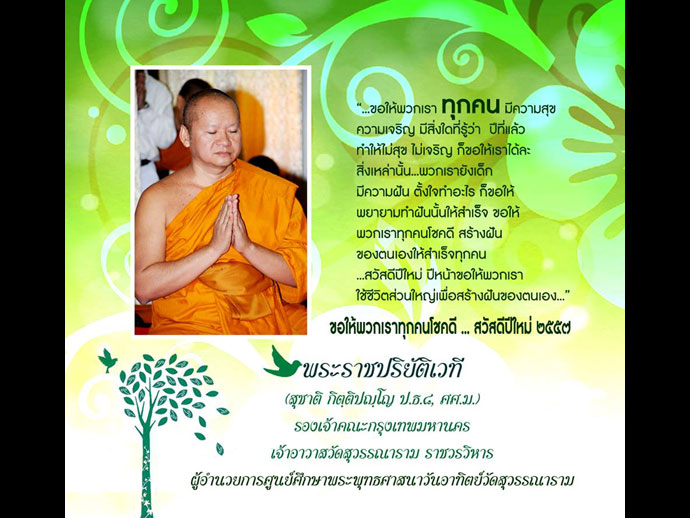 ขอเริ่มพุทธศักราช ๒๕๕๗ ด้วยเรื่องอันเป็นมงคล กราบนมัสการและขอพรพระศาสดา พระประธานของวัดสุวรรณาราม พระอารามหลวงชั้นโท ที่ตั้งอยู่ริมคลองบางกอกน้อยฝั่งตะวันตก ขอสิริมงคลจงมีแด่ผู้อ่านเรื่องราวของวัดอันสำคัญวัดหนึ่งของกรุงธนบุรี ค่ะ
