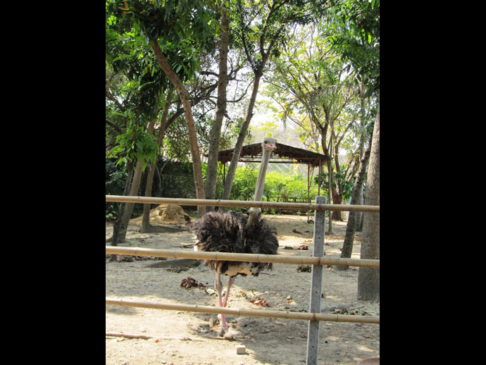 ดิฉันร่ำลาเจ้านกกระจอกเทศหน้าเศร้าด้วยใจเศร้าไปด้วย ที่เศร้าก็คือคิด (แบบเพ้อๆ เอาเองเช่นเคย) ว่าเขาคงจะอยากให้เราอยู่เป็นเพื่อน เพราะว่าเมื่อเดินจากมาเจ้านกกระจอกเทศทำหน้าเศร้า เราก็เลยโศกไปด้วยคิด (แบบเพ้อๆเอาเองเช่นเคย) ว่าเขาคงจะอยากให้เราอยู่เป็นเพื่อน เพราะว่าเมื่อเดินจากมาที่ตรงนั้นก็ดูเวิ้งว้าง ทุกอย่างอยู่ในความเงียบ หันหลังไปดูเห็นเขาก้มคอลงบนพื้นเสมือนไม่อยากดูเราอีก