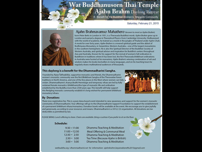 พระอาจารย์พรหม บวชมาเกิน ๓๕ พรรษาแล้ว ปัจจุบันเป็นเจ้าอาวาสวัดโพธิญาณ เมืองเซอร์เป็นไทน์ ประเทศออสเตรเลีย นอกจากนี้ท่านยังได้ดำรงตำแหน่งสำคัญๆ อีกหลายตำแหน่ง อาทิ กรรมการพุทธสมาคมออสเตรเลียตะวันตก เป็นที่ปรึกษาของศูนย์พระพุทธศาสนาในประเทศแถบเอเซียและออสเตรเลีย พระอาจารย์พรหมเป็นผู้สนับสนุนและเป็นกำลังสำคัญในการฟื้นฟูการอุปสมบทภิกษุณีสายเถรวาทซึ่งได้หมดไปเมื่อประมาณ ๓๐๐ ปีหลังจากพุทธปรินิพพาน ภิกษุณีรูปแรกในประเทศออสเตรเลียก็ได้รับการอุปสมบทที่วัดโพธิญาณ ที่ท่านเป็นเจ้าอาวาสแห่งนี้