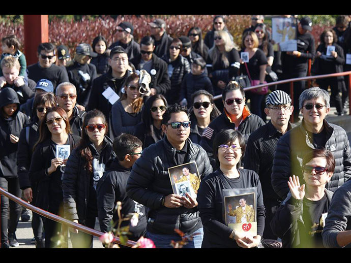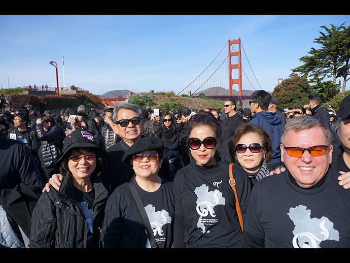 ในวันนั้นดินฟ้าอากาศเป็นใจ มีชุมชนชาวไทยและต่างชาติไปร่วมกิจกรรมมากกว่าหนึ่งพันคน ผู้เขียนเองปีนี้สุขภาพไม่สู้ดี จึงไม่ได้เดินข้ามสะพานเหมือนครั้งก่อนๆ แต่ไปจับจองที่อยู่ปลายสะพานฝั่งมารินเคาน์ตี้เพื่อได้ร่วมร้องเพลงสรรเสริญพระบารมีกับเพื่อนผองน้องพี่ ซึ่งไปกันมากมายจริงๆ ชุดสีดำเต็มพื้นที่ ดูน่าประทับใจยิ่ง เพื่อรำลึกในพระมหากรุณาธิคุณและแสดงความอาลัยในพระบาทสมเด็จพระปรมินทรมหาภูมิพลอดุลยเดช
