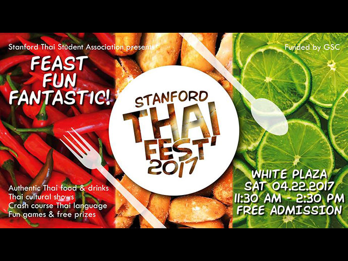 และอีกที่ที่ไม่ใช่วัด แต่เป็นสถานศึกษาท็อปเท็นของอเมริกา มหาวิทยาลัยแสตนฟอร์ด ในวันเสาร์ที่ 22 เมษายน ศกนี้ จะเปิดโอกาสให้สมาคมนักเรียนไทยในแสตนฟอร์ดได้จัดงานประเพณี วัฒนธรรม ไม่ว่าจะเป็นด้านอาหารไทย นาฏศิลป์ ดนตรีไทย หรือคอร์สวิชาภาษาไทยสั้นๆ วันเดียวจบโดยคณาจารย์สอนภาษาไทยของมหาวิทยาลัย สนใจติดตามดูโปสเตอร์ที่แสดงในคอลัมน์นี้นะคะ