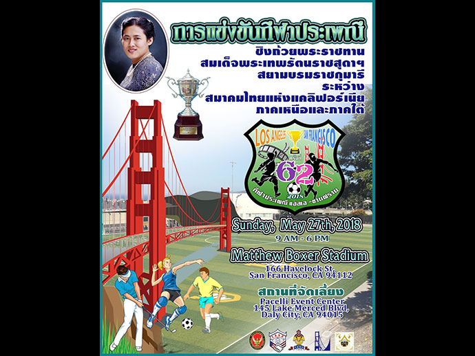 พบกันในวันอาทิตย์ที่ 27 พฤษภาคม ค.ศ. 2018 ณ Matthew Boxer Stadium 166 Havelock St., San Francisco 94112 9.00 a.m. 6.00 p.m.