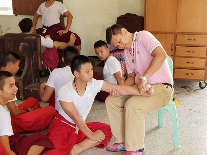 ขอบคุณ ครูตึ๋ง อาจารย์ชัยรัตน์ วีระชัย ที่ได้แนะนำให้ไปพบกับ ครูโด้ อาจารย์ วชิรพงศ์ ยนตรกิจ ซึ่งวันนั้นครูโด้กำลังสอนโขนนักเรียนอยู่พอดี ครูโด้เคยเดินทางมาร่วมกิจกรรมการแสดงให้กับวัดมงคลรัตนารามเบิร์กเล่ย์ มาเมื่อหลายปีมาแล้ว และวันนั้นครูกรุณาให้คำแนะนำถึงการฝึกโขนเบื้องต้นให้กับเยาวชนไทยที่เติบโตในอเมริกา ว่าภายในช่วงฤดูร้อนที่เด็กๆ ปิดภาคเรียน สามารถทำการเรียนการสอนให้เหมาะสมได้ และเป็นไปได้ เพราะคุณครูท่านมีประสบการณ์ในการจัดสอนเยาวชนทั้งนอกวิทยาลัย และในวิทยาลัยนาฏศิลป์มาแล้ว