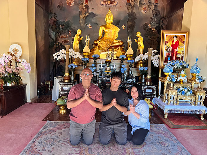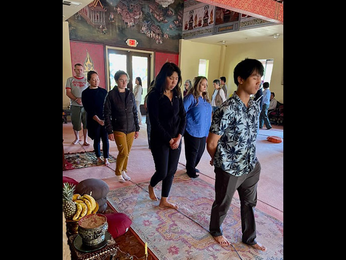 ผมใช้เวลาเกือบ 3 ปีอยู่ในภาวะสับสนแบบนั้น จนวันอังคารหนึ่งคุณแม่ชวนไปที่วัดพุทธานุสรณ์ (Wat Buddhanusorn) เมืองฟรีมอนต์ ที่คุณแม่ไปถวายอาหารเป็นประจำ คุณแม่บอกว่าการนั่งสมาธิช่วยให้แม่สงบมากขึ้น และอยากให้ผมลองดู วันนั้นผมได้นั่งสมาธิเป็นครั้งแรก แค่ 1 นาที กับพระที่ชื่อหลวงพี่หลิน เพียงแค่นาทีนั้น มันยังไม่ถึงกับเปลี่ยนชีวิตทันที แต่รู้สึกได้เลยว่ามันต่างจากความวุ่นวายที่ผมเคยชิน มันสงบ เย็น และรู้สึกมีความหมาย