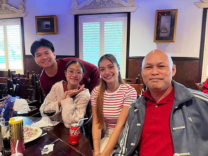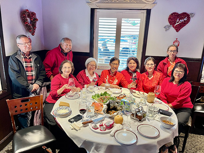 ณ ห้องอาหารนิวกรุงไทย เมืองซาน โฮเซ่ รัฐแคลิฟอร์เนีย ของน้องคนงามและใจงามยิ่งในกลุ่มพวกเรา คุณแอ๊ว-ประภา ศิริภักดิ์ น้องคนนี้เขาจัดพิธีไหว้เจ้าและเลี้ยงลูกน้อง รวมทั้งเชิญชวนเพื่อนพ้องน้องพี่ไปร่วมงานเป็นประจำทุกปี และปีนี้ก็บังเอิญตรงกับวันเกิดของคุณแอ๊วด้วย การฉลองก็ยิ่งมีความหมายเพิ่มขึ้นอีกเท่าตัว