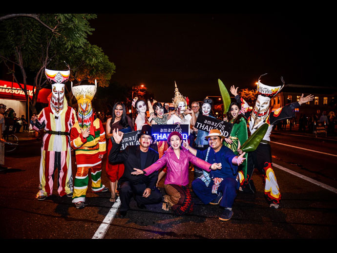 ภาพขบวนผีไทยที่ ททท.สำนักงานลอสแอนเจลิส นำขบวนร่วมงานเทศกาลประจำปีของนครลอสแอนเจลิส ในงาน Halloween Party บนถนน Santa Monica ที่ West Hollywood งานนี้มีผู้ร่วมงานกว่า 5 แสนคน ขบวนผีไทยต่างสร้างความสนใจให้ผู้เข้าร่วมงาน โดยมีการขอถ่ายภาพตลอดทั้งเส้นทาง เครดิตภาพ โดย วินัย ศุภมงคลทวีสุข