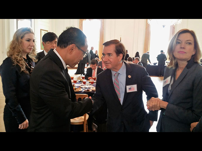 ในที่ประชุม Rep. Ed Royce (R - CA) ได้แสดงความเสียใจอย่างสุดซึ้งต่อความสูญเสียของประเทศไทย นอกจากนี้ได้แลกเปลี่ยนข้อคิดเห็นในประเด็นเกี่ยวกับความท้าทายของโลก เช่น การต่อต้านการก่อการร้าย การฆ่าล้างเผ่าพันธุ์ ปัญหาการสะสมอาวุธนิวเคลียร์ของเกาหลีเหนือและซีเรีย ปัญหาการปิดประเทศของเกาหลีเหนือทำให้ไม่สามารถตรวจสอบจำนวนขีปนาวุธได้ การกระจายเสียงนานาชาติ (International Broadcasting) กฎหมายสิทธิเสรีภาพในการกระจายเสียงและการสนับสนุนความร่วมมือในภูมิภาคเอเชีย