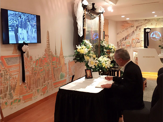 เมื่อวันพฤหัสบดีที่ ๓ พฤศจิกายน ๒๕๕๙ นายพิศาล มาณวพัฒน์ เอกอัครราชทูต ณ กรุงวอชิงตัน พร้อมด้วยภริยาเดินทางมาร่วมลงนามสมุดถวายความอาลัยแด่พระบาทสมเด็จพระปรมินทรมหาภูมิพลอดุลยเดช ณ สถานกงสุลใหญ่ ณ นครลอสแอนเจลิส โดยเอกอัครราชทูต ณ กรุงวอชิงตัน และภริยา พร้อมด้วย นายธานี แสงรัตน์ กงสุลใหญ่ นายสรศักดิ์ สมรไกรสรกิจ รองกงสุลใหญ่ ร.ท.หญิง กรรภิรมย์ วิชาธร กงสุล นายสุริยะ สิทธิชัย ผู้ช่วยผู้อำนวยการสำนักงานการท่องเที่ยวแห่งประเทศไทย สาขาลอสแอนเจลิส ได้ยืนถวายความอาลัยร่วมกัน เอกอัครราชทูตฯ และภริยาลงนามในสมุดถวายความอาลัย และเยี่ยมชมภาพพระราชกรณียกิจเมื่อครั้งที่พระบาทสมเด็จพระปรมินทรมหาภูมิพลอดุยเดชและสมเด็จพระนางเจ้าฯ พระบรมราชินีนาถทรงเสด็จเยือน นครลอสแอนเจลิสในปี ค.ศ. ๑๙๖๐