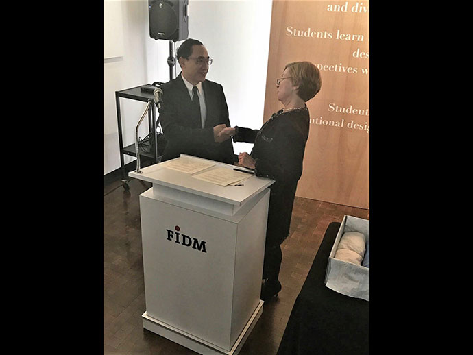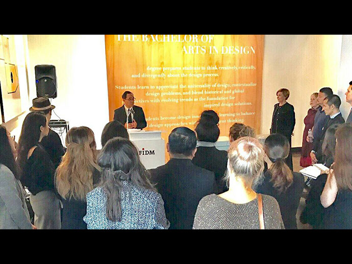 กงสุลใหญ่ฯ ได้กล่าวขอบคุณ FIDM สำหรับโครงการ Art of Thai Silk จัดขึ้นเนื่องในโอกาสเฉลิมพระเกียรติสมเด็จพระนางเจ้าฯ เมื่อสิงหาคม ๒๕๕๙ ที่ผ่านมา และภูมิใจที่นักออกแบบไทยได้มีโอกาสเผยแพร่ผ้าไทยให้เป็นที่รู้จัก โดยในโอกาสดังกล่าวกงสุลใหญ่ฯ ได้พบนักศึกษาไทยจำนวน ๔ คนซึ่งกำลังศึกษาด้านการออกแบบที่สถาบัน FIDM และได้ชมผลงานของนักศึกษาที่เรียนจบจัดแสดงในพิพิธภัณฑ์ดังกล่าวด้วย