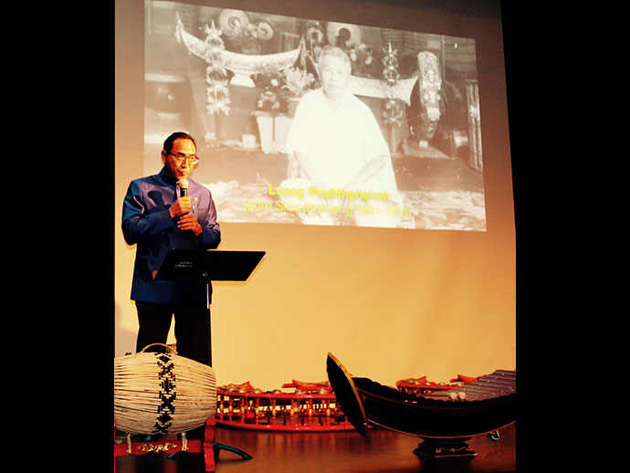 นาย Steve Loza คณบดีภาควิชาดนตรี UCLA ศาสตราจารย์ Debora Wong จากมหาวิทยาลัย UC Riverside ดร. Helen Rees, Director of the World Music Center, UCLA คุณมาลินี สาคริก ผู้อำนวยการมูลนิธิหลวงประดิษฐ์ไพเราะ ดร. อานันท์ นาคคง ผู้แทนจากมูลนิธิหลวงประดิษฐ์ไพเราะและนักดนตรีจากวงกอไผ่ ดร. สุพีนา แอดเลอร์ อาจารย์ผู้สอนวิชาดนตรีไทยของมหาวิทยาลัย UCLA ร.ท.หญิง กรรภิรมย์ วิชาธร กงสุล เข้าร่วมงานดังกล่าว